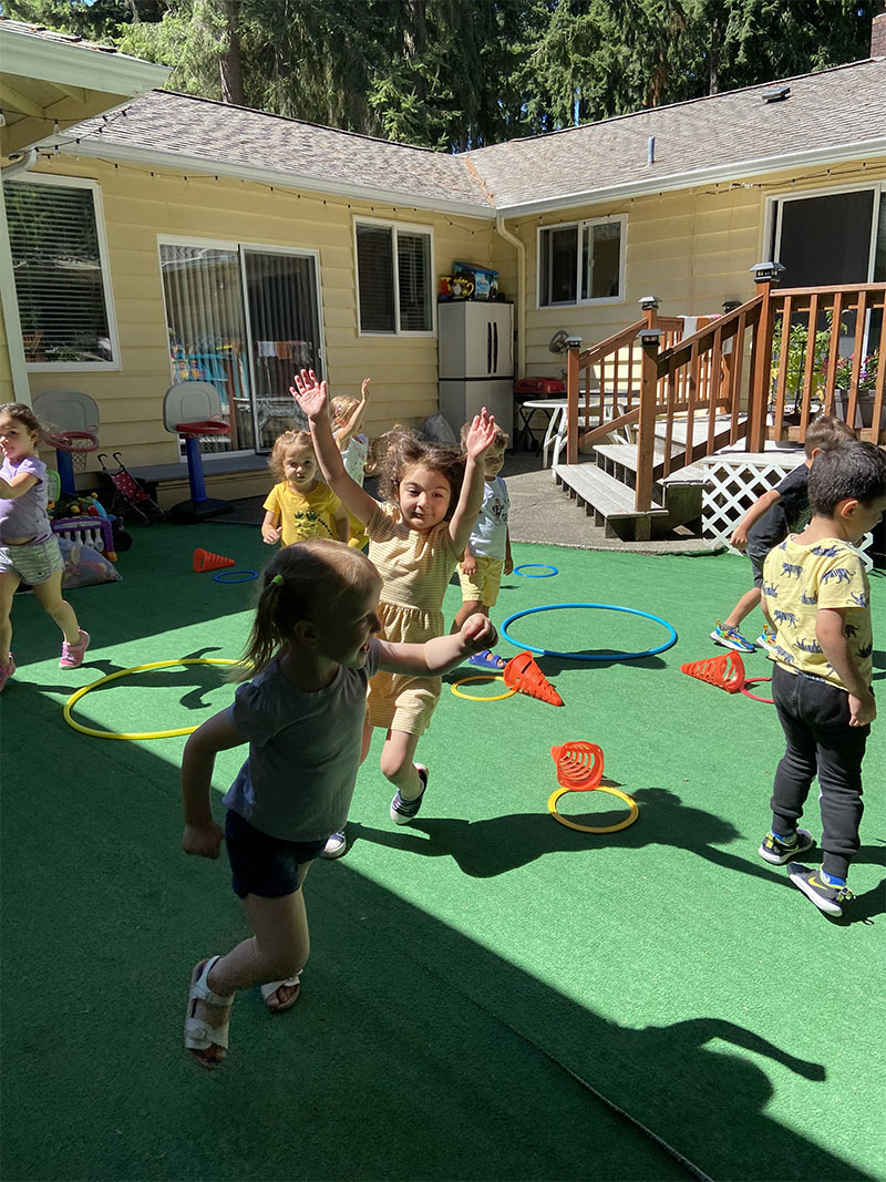 Мы находимся в Беллвью. У нас светлая, просторная игровая и столовая, помещение с отдельной спальней укомплектованное кроватями, просторная детская площадка на свежем воздухе, 5-ти разовое питание (готовим ежедневно из свежих органических продуктов), детям с аллергией готовим отдельно.